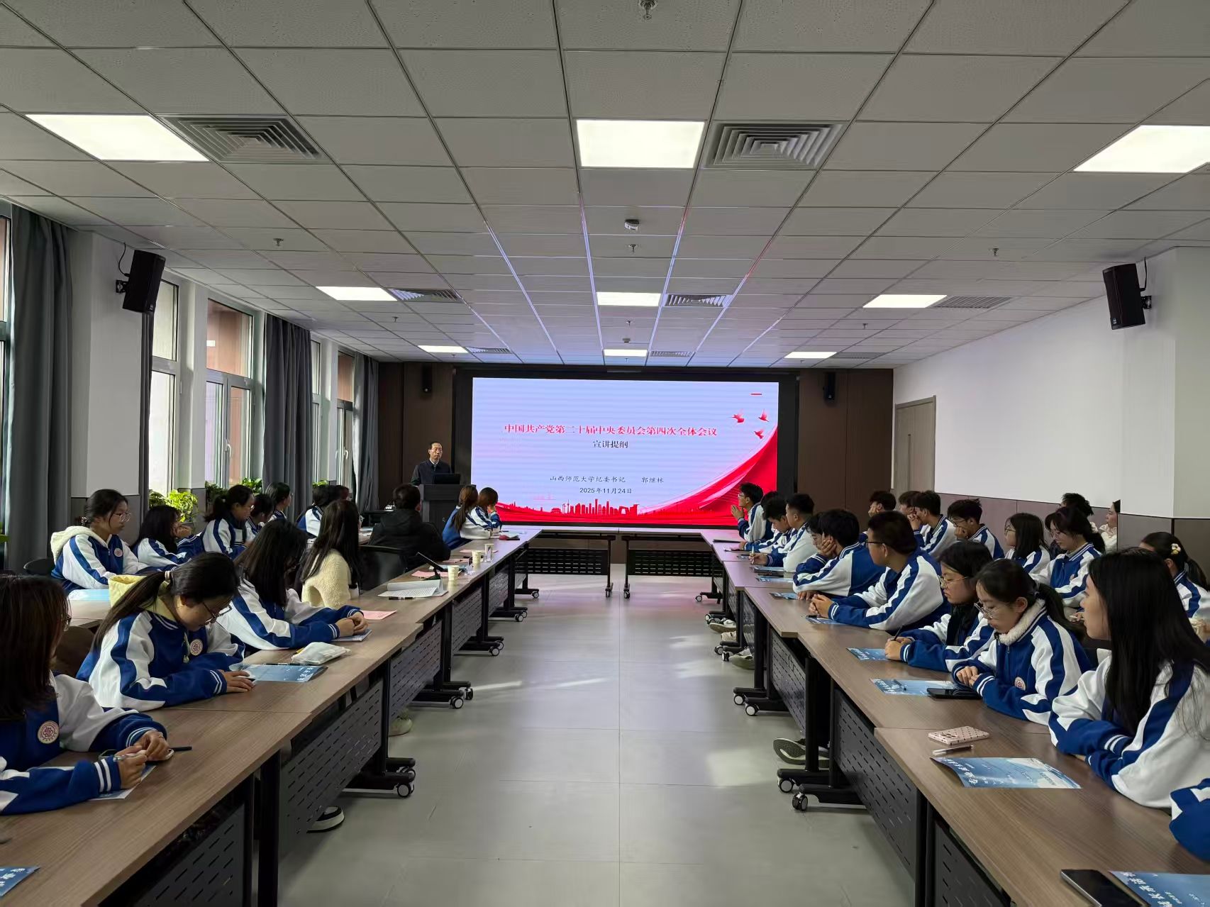 11月24日上午,校纪委书记郭继林深入我院联系班级—25570102班宣讲党的二十届四中全会精神,参加“锚定航向启新程,规划青春赴未来”生涯规划主题班会。