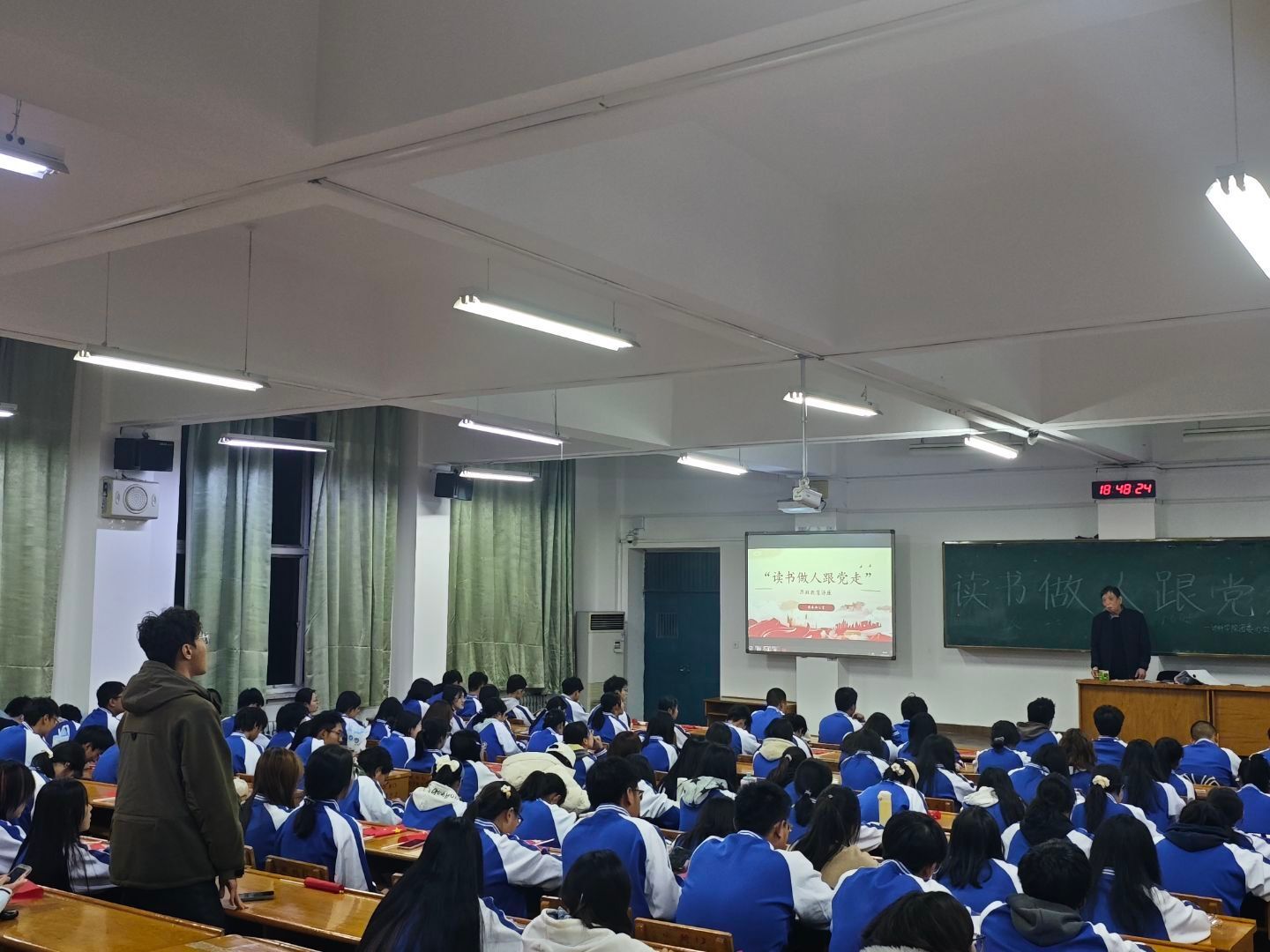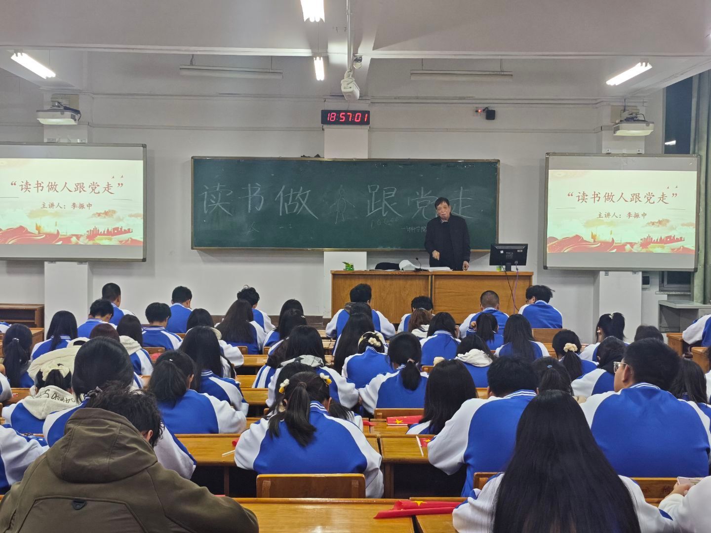 11月1日晚,我院于南区五号教学楼210教室举办了“读书做人跟党走”思政教育讲座。本次讲座邀请李振中老师主讲,2025级全体同学参加。