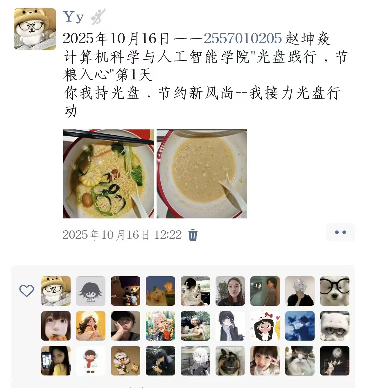 我院青协举办“光盘践行,节粮入心”世界粮食日打卡活动