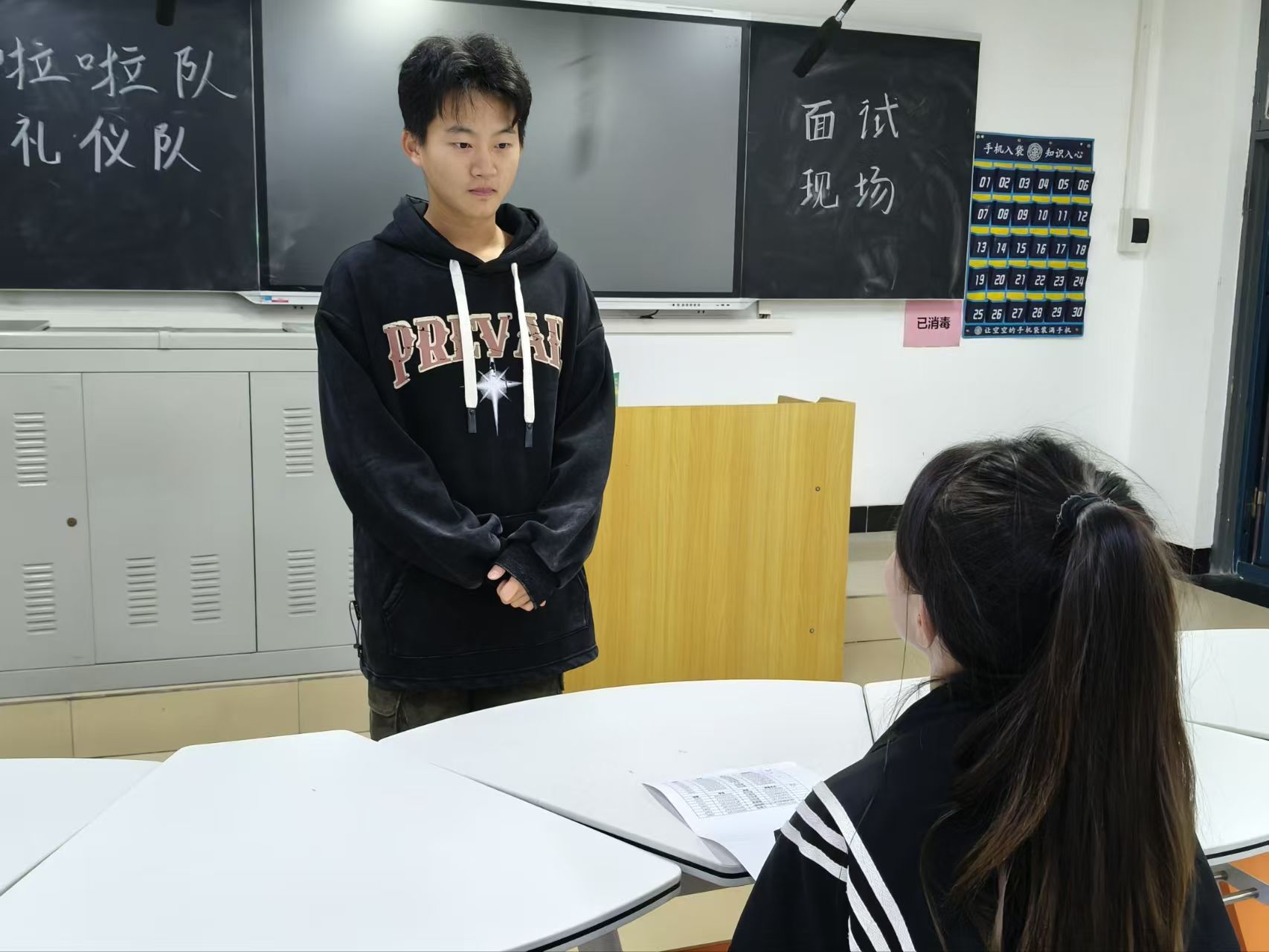 面试过程包含自我介绍、礼仪展示与现场问答三个环节。同学们精神饱满,举止优雅,笑容亲切,从自我介绍到站姿致意到行走转身,充分展现了自己的礼仪素养和个人魅力。在问答环节中,评委们围绕现场表现、团队协作及活动理解等方面展开提问,大家认真应答,话语真挚而富有感染力,表达了对礼仪工作的深刻理解与由衷热爱。最后,评委对参选同学在各环节的综合表现进行量化打分,选出最终入队的新成员。