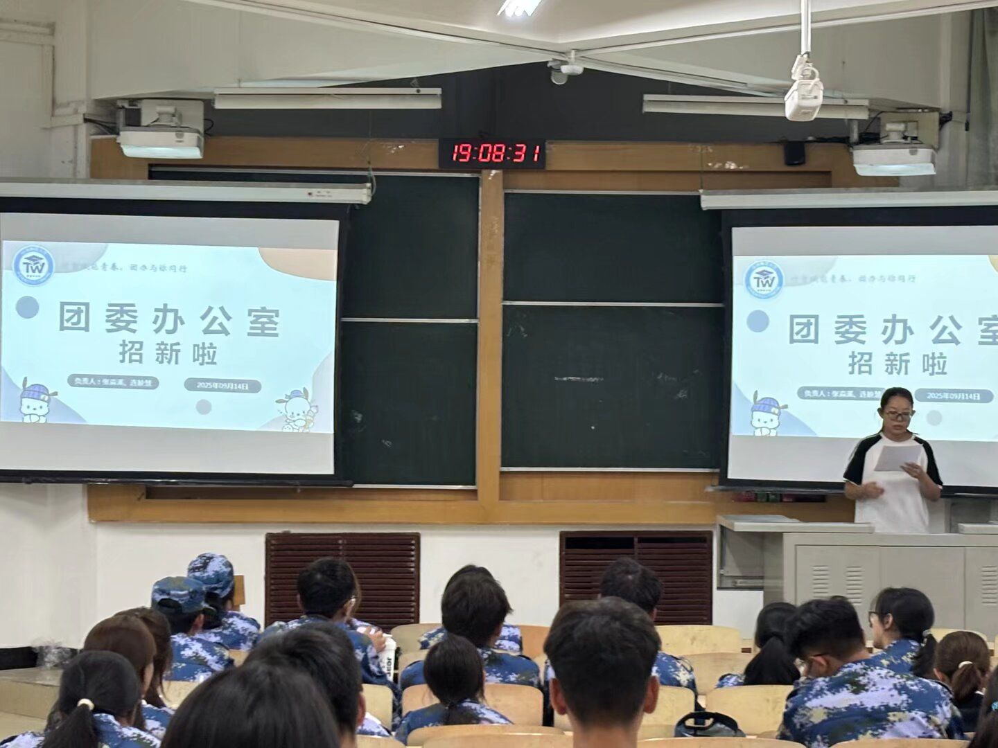 9月14日晚,我院团学组织于南区5号教学楼开展了招新宣讲会,全体2025级新生参加。