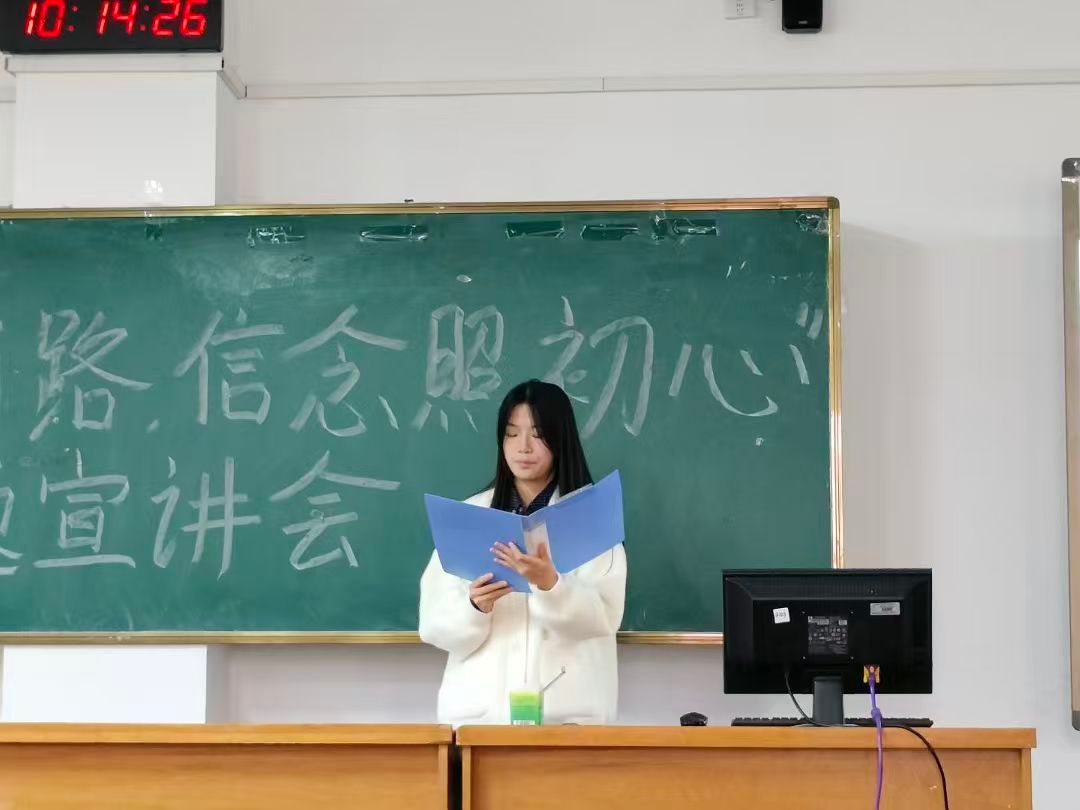 10月18日上午,我院“青马工程”培训班在南区5210教室举办了“思想引前路,信念照初心”主题宣讲会,院青马工程辅导员曹慧敏、素拓师许嘉琪、贾慧玲、马喻敬及2025级全体新生参加。