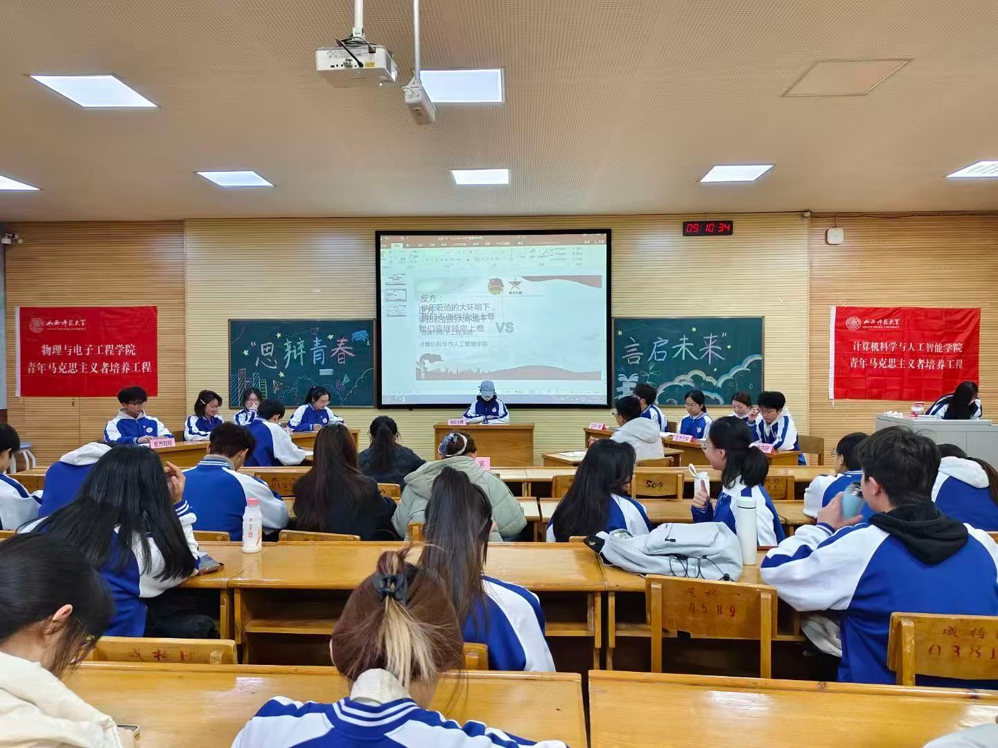 为培养青马学员的逻辑思维和表达能力,11月23日上午,我院联合物电学院“青马工程”培训班于南区五号教学楼410教室举办了“思辨青春,言启未来”主题辩论赛,展开了一场思想与语言的精彩交锋。