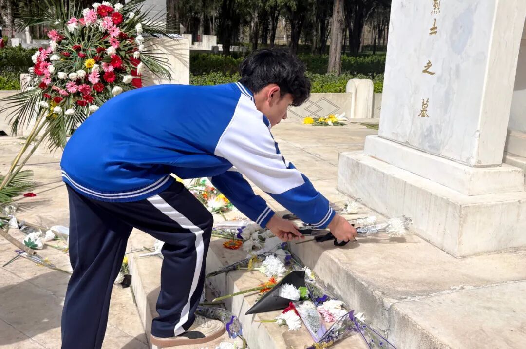 之后,同学们依次敬献鲜花,认真擦拭烈士墓碑,寄托对英烈的无限追思,以实际行动守护英烈的安息之所。最后,大家驻足瞻仰,仔细阅读碑文,在历史的印记中接受精神洗礼,坚定理想信念。