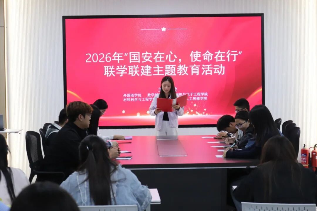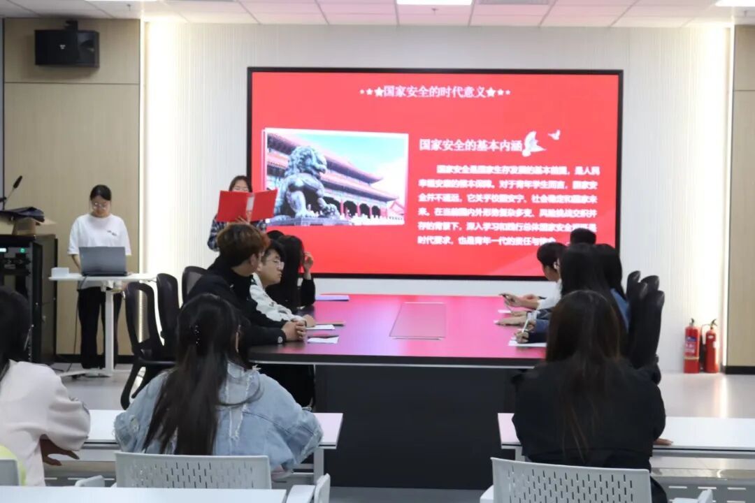 为深入学习贯彻总体国家安全观,强化青年学生的责任担当,4月15日晚,我院与外国语学院、数学科学学院、物理与电子工程学院、材料科学与工程学院于北区五号教学楼C408A会议室联合开展“国安在心,使命在行”联学联建主题教育活动,各学院团委学生会骨干成员共学国家安全知识,共话青年使命担当。